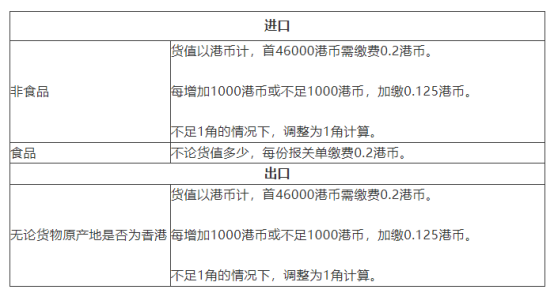 现在,香港每张进出口报关单的报关费上限为二百元,具体报关费用如下: